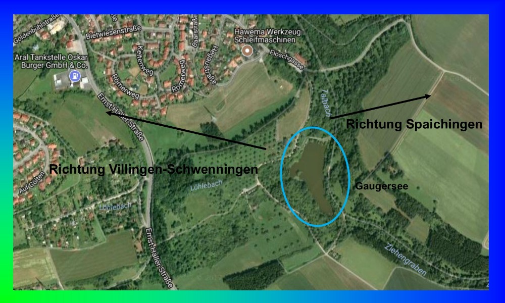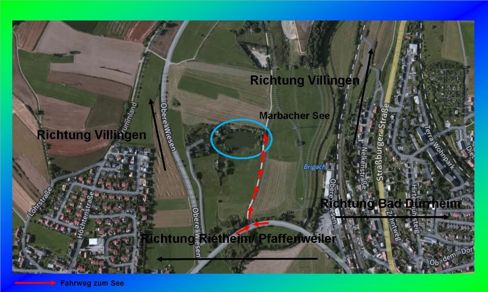 Lage:                                  In der Region Schwarzwald-Baar, ca. 45 km östlich von Freiburg i. Breisgau. Die Anlage mit dem See befindet sich im Feld zwischen Marbach und Rietheim.