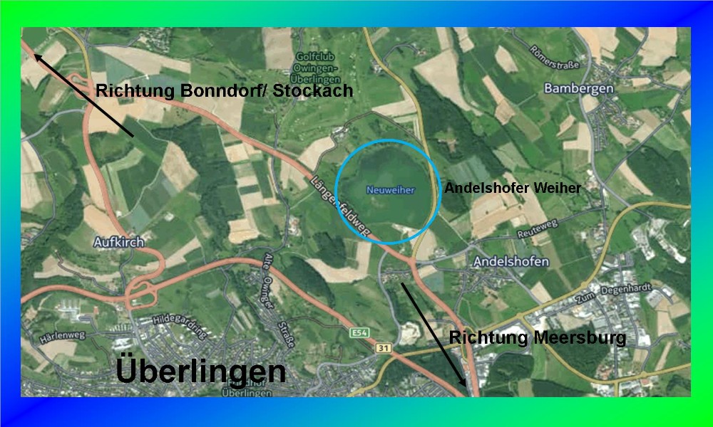 Lage:                                  In der Region Bodensee, ca. 2 km nördlich des Bodensees. Der sogenannte Neuweiher befindet sich zwischen Überlingen und Owingen und ist von den Straßen